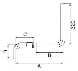 <商品についてのお問い合わせ> TEL:0120−1794−00 LIXIL INAX お客さま相談センター INAX 隅付ロータンク用洗浄管 32mm(和風床上用) 【寸法(mm)】 管径:32 A:265 +30−0 B:170 C:140 D:135