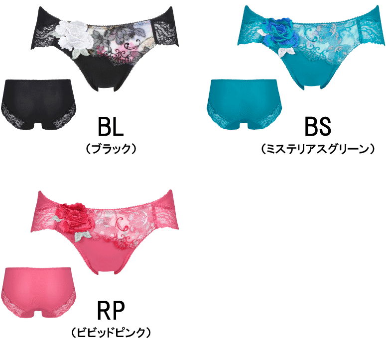 コーディネイトアイテム(別売り) 【サイズ】 Mサイズ ヒップ87〜95 Lサイズ ヒップ92〜100 【特徴】 ビキニ・ハイレッグ ヒップかぶりのよい安定したはきごこち ブラジャー(BTJ・412、BTJ・712)とコーディネイト着用できるサニタリー(生理用)ショーツ マチは防水シート入りで羽付きナプキン対応 フロントレースにはスティックプリントチュールエンブロイダリーレースを使用 フロントレースにはラメ糸を使用(BL・BSカラーのみ) 洗濯機可 ※お洗濯は、必ず「取り扱い絵表示」にしたがってください。